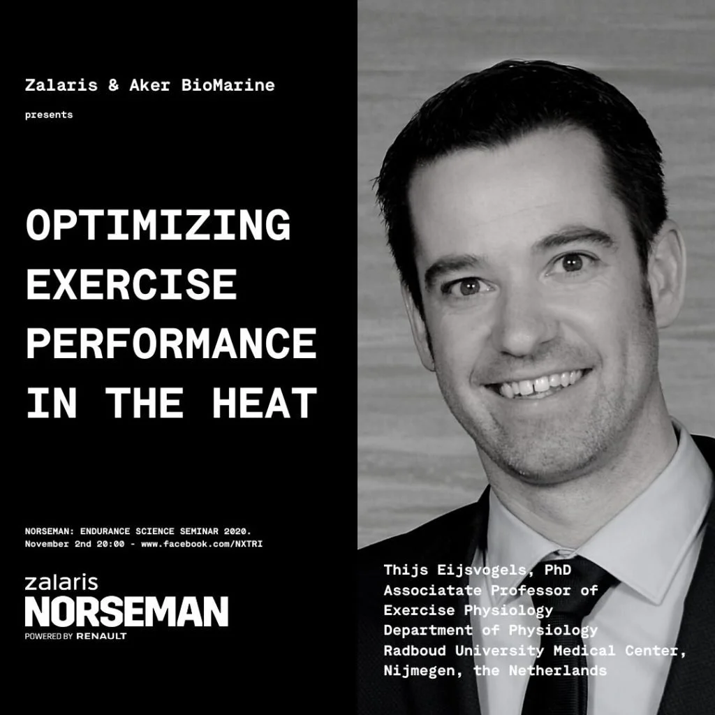 Dr. Eijsvogels explained the principles of human thermophysiology and discussed how exercise affects health and performance, especially under hot and humid conditions. In the second part of his talk, he provided recommendations on how to beat the heat. Practical advice on heat acclimation/ acclimatization, assessing heat stress levels, adopting cooling strategies and hydration prior to and during exercise were given. This way, you can boost your performance during your next race in the heat!